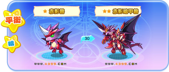 | 成长故事:据说赤影兽是天神创造的灵兽,有着惊人的力量,绿色的眼瞳似乎也暗示着它非比寻常的身份。 | 成长故事:曾经突然失踪了一段时间,等回来后力量变得十分强大,它到底去了哪儿并经历了什么呢? | |||||||||||||||||||||||||||||||||||||||||||||