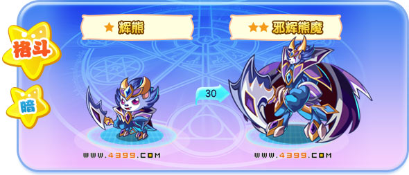 | 辉熊认识到自己的样子不够可爱,所以聪明的它决定走酷酷的路线。 | 邪魅的笑容、弯弯的魔镰,强壮的身体给邪辉熊魔添上了邪气,但是又有一种霸气油然而生。 | ||