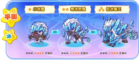 | 小冰猩 | 寒冰怒猩 | 极冰猩王 | |||||||||||||||||||||||||||||||||||||||||||||||||||