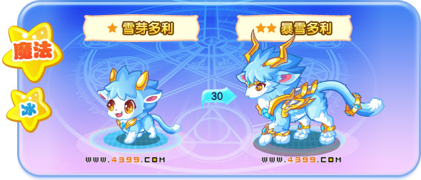 | 成长故事:雪芽多利和尼亚是好朋友,它经常帮助尼亚躲避哈雷斯的追捕! | 成长故事:暴雪多利拥有召唤暴风雪的力量,如果有邪恶力量胆敢袭击它的家园,它必将奋力抗争! | ||||||||||||||||||||||||||||||||||||||||||