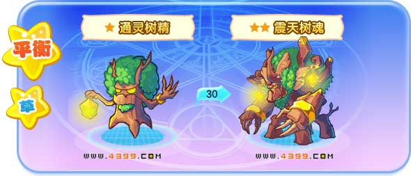 | 成长故事:通灵树精总是提着一盏灯为夜晚经过神圣之谷战场的灵兽照明,可是总被误认为是坏人,这让它很烦恼。 | 成长故事:用“酷炫霸气”来形容震天树魂再也合适不过了,它可以自己搬起一整栋大房子,可厉害了。 | ||||||||||||||||||||||||||||||||||||||||||