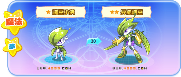 | 成长故事:豌豆小侠常年都用一块叶子挡着脸,只露出一只眼睛,导致从没有人见过它的长相,让人十分好奇。 | 成长故事:异能豌豆的魔法职业给爱恶作剧的它带来很大的便利,不过总爱捉弄人的性格使它朋友越来越少了。 | ||||||||||||||||||||||||||||||||||||||||||