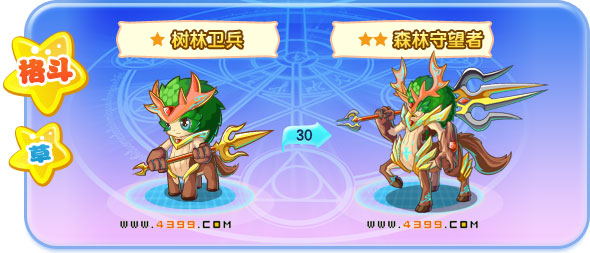 | 成长故事:树林卫兵的长戟是由千年古树制成,拥有远古的力量,能够轻易刺穿钢铁。 | 成长故事:森林守望者是森林的守护神,它拥有自然之神的力量,只要有入侵者,必将被它迅速制裁。 | ||||||||||||||||||||||||||||||||||||||||||