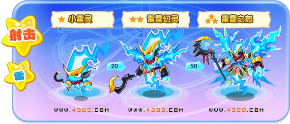 | 成长故事:每当打雷的时候,小雷灵总喜欢跑到屋顶,因此很多人都以为他是一根避雷针。 | 成长故事:雷霆幻灵一直在追寻着更强大的力量,为此它走遍了世界各地。 | 成长故事:为了获得更强大的力量,雷霆之怒接受了来自雷神的考验,终于它成功获得了无上的力量。 | |||||||||||||||||||||||||||||||||||||||||||||||||||||||