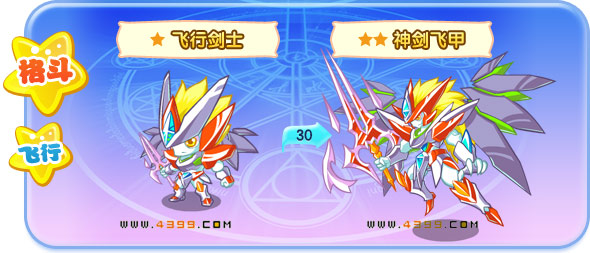 | 飞行剑士喜欢翱翔天际,体会俯瞰大地的感觉。 | 神剑飞甲是天空的守护者,谁敢放肆都将被它制裁。 | ||