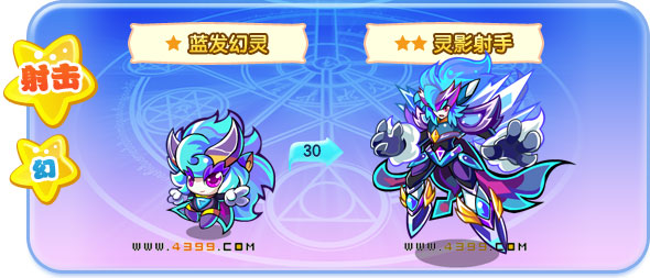 | 蓝魔炎:召唤蓝魔火炎射击敌人,造成伤害的同时有一定概率增加自身闪避,持续2回合 灵影祝福:使用幻术祝福自身,将吸收己阵中所有在场灵兽的一定怒攻值,然后射击敌人造成伤害 |