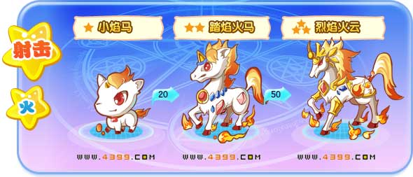 | 成长故事:“其实我是马啦。”小焰马一脸认真地在和别人解释。它已经不知道第几次被人误会为羊了。 | 成长故事:踏焰火马现在可自信了,它走到哪里都能听到大家在偷偷讨论它:“好漂亮的火马啊!” | 成长故事:矫健又完美的体型使烈焰火云看起来漂亮极了,大家准备推荐它去参加下一届的神马大赛呢。 | |||||||||||||||||||||||||||||||||||||||||||||||||||