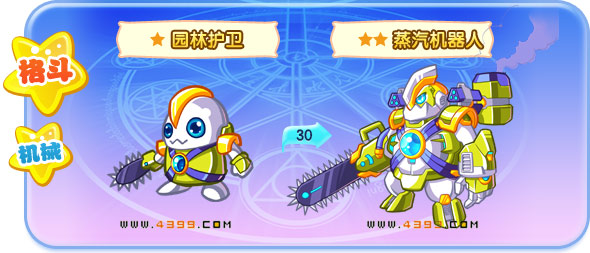 | 园林护卫的锯子从不用来砍树,它只喜欢修剪树枝。 | 蒸汽机器人的力量太大了,每次修剪枝叶都将造成一次大灾难。 | ||