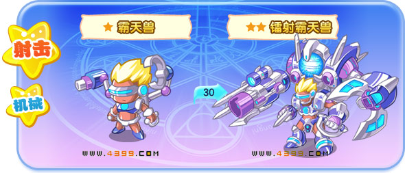 | 霸天兽很喜欢射击,但是每一次都射不中,为此它一直都很苦恼。 | 霸天兽终于成长为一名出色的狙击手,它还特意配备了镭射枪。 | ||