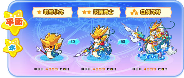 | 成长故事:手拿小刀,快速奔跑,虽然我个子小,但是我用行动证明了我是一个勇敢的龙。 | 成长故事:为了使用的武器更顺手,特地打造了一把长戟,配合腾云驾雾的本领,使用的出神入化。 | 成长故事:现在的它看起来更加的威武,它相信在战斗中成长,才能使自己变得更加强大。 | |||||||||||||||||||||||||||||||||||||||||||||||||||