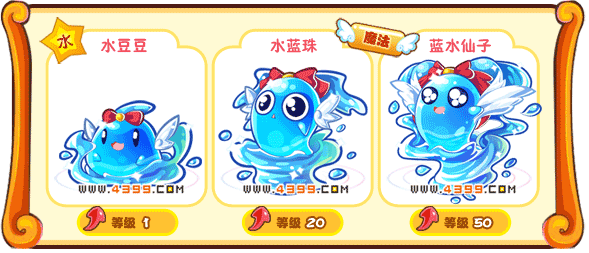 | 成长故事:如果不是你眼尖,一般很难发现它,因为它从水中来,能完美地与水融为一体。 | 成长故事:作为水中的精灵,有一双翅膀是必不可少的,除了可以飞之外,也可以作为划水的工具。 | 成长故事:在水中的日子很无聊,所以除了摆弄蝴蝶结之外,爱美的它偶尔也会给自己换几个漂亮的发型。 | |||||||||||||||||||||||||||||||||||||||||||||||||||
