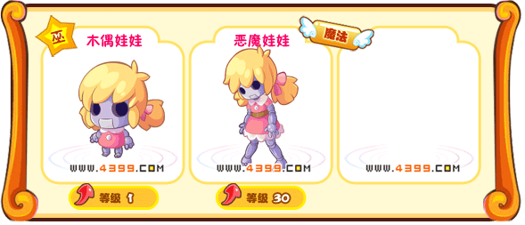 | 成长故事:炼金术师打造的炼金娃娃,不要看它长得小小的,它可是炼金术师的得力好助手哦。 | 成长故事:长大后被坏人利用变成了恶魔娃娃,并在坏人的控制下伤害了主人,为此内心一直抱着深深的愧疚。 | ||||||||||||||||||||||||||||||||||||||||||