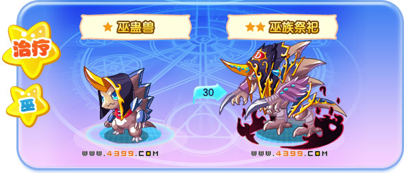 盅兽撞击:巫蛊兽以尖锐的角刺向敌人,对敌人造成伤害的同时为已方随机一只灵兽治伤,恢复血量1000点。 |