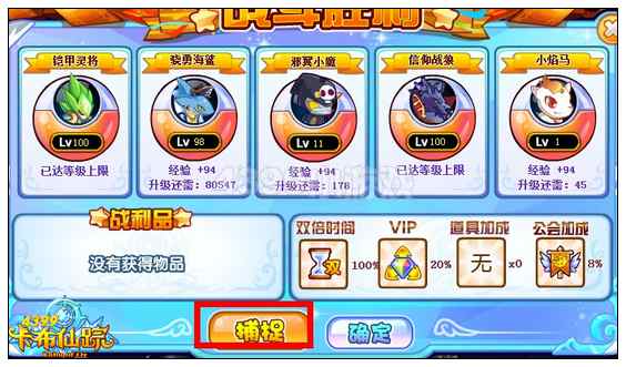 取胜之后不要急着点“确定”,点击“捕捉”按钮才能进入捕捉灵兽的界面哦。