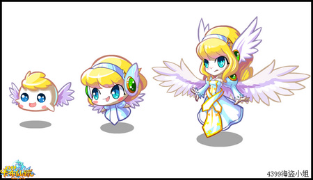 白羽小Q达到20级进化为第二形态飞羽甜甜,飞羽甜甜达到50级就可以进化为圣羽艾丽啦!