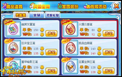 小卡布也可以到【商城】的“灵兽坐骑”用80仙踪币(VIP:72)直接购买获得哦~