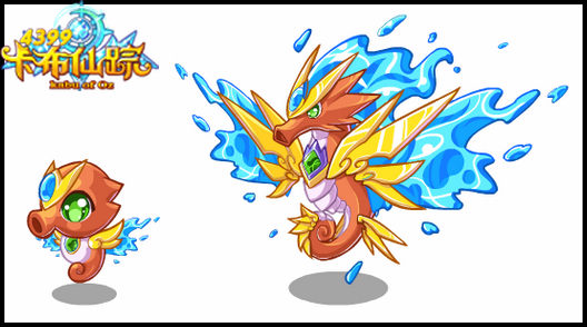 青眼海马达到30级就可以进化为蓝魔海马啦!