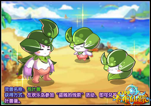 卡布仙踪苍叶兽小卡布可以在欢乐岛参加“盗贼的线索”活动,即可兑换苍叶兽蛋。