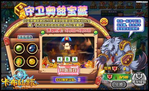 小卡布们在活动中帮助战地之狼守卫宝藏打败坏女巫的爪牙就可以得到战地之狼的认可,获得战地之狼灵兽蛋!