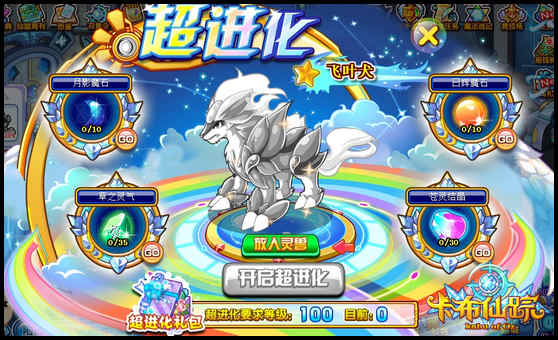 小卡布们可以在灵兽中心进行超进化,超进化需要必备的材料是: