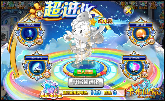 答:卡布仙踪幻波仙灵可以在灵兽中心进行超进化,由100级幻水灵超进化而来。
