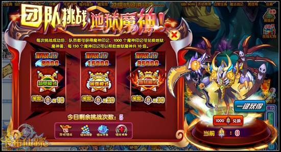 地狱魔神获得方法:通过组队副本获得1000个魔神印记兑换地狱魔神灵兽蛋!