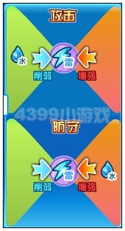 这里雷系灵兽是受到水属性的攻击是加成伤害,受到【暂无】属性属性的攻击是减免伤害。雷系攻击对【暂无】属性的灵兽是增强效果,对水属性的灵兽是削弱效果