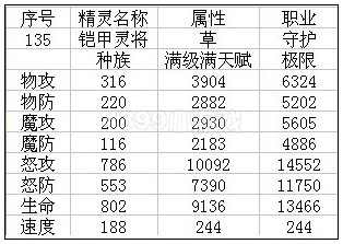至于魔防,个人不推荐,因为铠甲灵将的魔防并不出色,而物防却是顶尖的,要么就只能255魔防+255物防,不过这样生命没强化,对于守护精灵来说没有生命学习力很容易被击垮的。