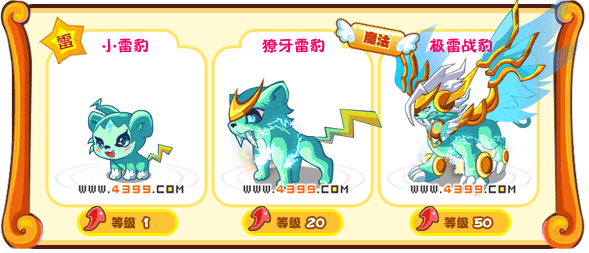 极雷战豹是一只外形不错,战斗力适中的魔法灵兽,雷属性略坑,但是技能比较出彩,前期没有冰魔的时候可以作为主力魔法输出,后期就作为主力卖萌吧……