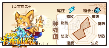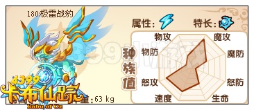 极雷战豹的魔攻、怒攻、速度在魔法特长的属性中都算是比较高的,虽然相比魔法之王的冰魔还有一定差距,但是和另一只比较热门的魔法灵兽雷霆鼠王还是在伯仲之间的(魔攻稍低,怒攻和速度上有一定优势),总体来讲种族值上并不算吃亏,在前期还没能得到冰魔的时候可以作为一种选择。