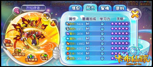 卡布仙踪烈焰使者适合暴击阵,可双向提高暴击率,可以说是想不暴击都难啊!