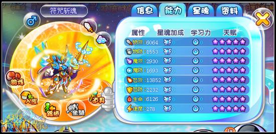 分析:极·战神附体可以提高自身的物攻,此灵兽的的物攻很不错,配合星魂能够独占平民灵兽物攻的半边天,如果上了战场会有很棒的表现。极·天神灭世增加怒攻,可以增强斩魂的怒攻,弥补先天性不足。极·风之优雅提高闪避率,防止对手打到我们,我方一闪避,那么下回合取得胜利的可能性就会大大增加。