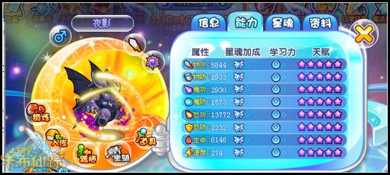 综合分析:夜影输出方面较为强,物攻和怒攻若是加上学习力和星魂,应该能更强了。生存方面过于弱,三防过低,物防,魔防和怒防一样,太低了,基本被打中都是必死无疑的,生命的话,若是加上学习力和星魂,应该抵挡得住其他灵兽的攻击,速度过低,总的来说夜影的极限值不怎么样。