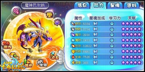 评价:这只灵兽的输出能力不错,但是生存能力有一定的欠缺,技能不错,魔神巴尔纳值得你拥有!