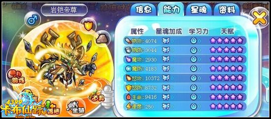 卡布仙踪岩铠帝尊技能逆天,生存能力很强,但是获得方法有点难度。