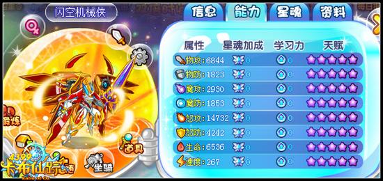 卡布仙踪闪空机械侠中上游的属性值有很大提升空间,外貌高、帅霸气,实用度较高,值得一练。
